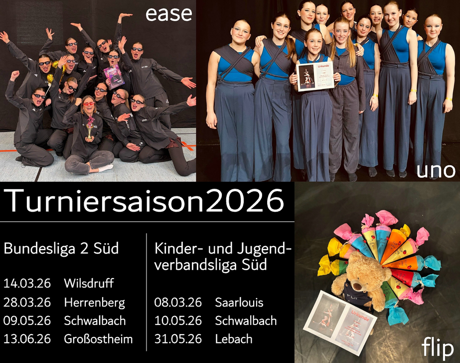 Letzten Sonntag war es endlich soweit. Unsere Mannschaften FLIP und UNO eröffneten die Saison 2026 mit dem Kinder- und Jugendligaturnier in Saarlouis. FLIP ertanzte sich in seiner allerersten Turniersaison einen tollen 7. Platz und UNO verpasste nur ganz knapp den Platz auf's Treppchen und belegte Platz 4.